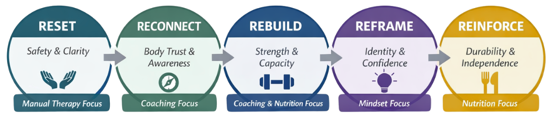 Most recovery programs focus on fixing the body — but ignore the nervous system, confidence, habits, and identity shifts that come with setbacks.